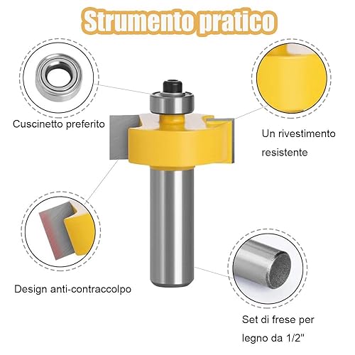 1/2' Fresa per Scanalature con Gambo con 7 Cuscinetti Set Strumento,Strumento di Lavorazione del Legno,Frese per Legno a T