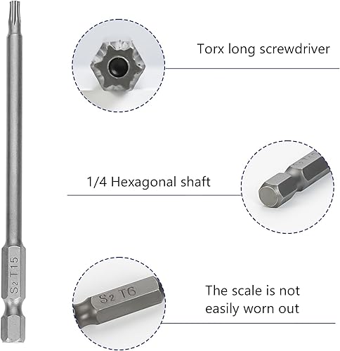 14 Pezzi Set Inserti Torx per Avvitatore Professionali,10cm Cacciaviti Torx con Foro,1/4' Cacciavite Torx Bit,Torx Lunghe Magnetiche,Punte di Tipo Torx per Riparare Macchinari e Attrezzature