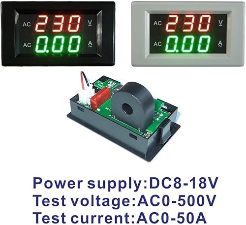 LED Digitale Voltmetro Amperometro AC 50A Tipo Fisso AC 0-500V Tensione Corrente Doppio Metro DC Volt Ampere Tester Volt Amp Tester da pannello (Color : Black cover)