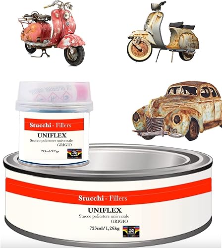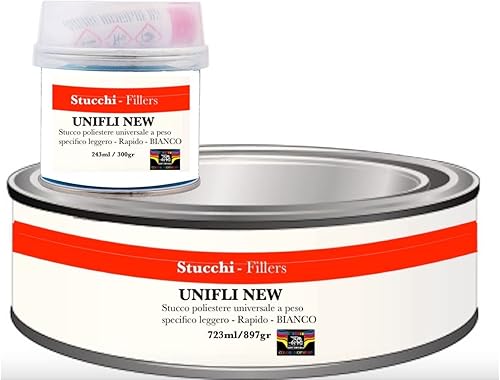 STUCCO METALLICO POLIESTERE CARROZZERIA METALLO AUTO CARROZZIERE BIANCO-GRIGIO (243 ml, BIANCO)