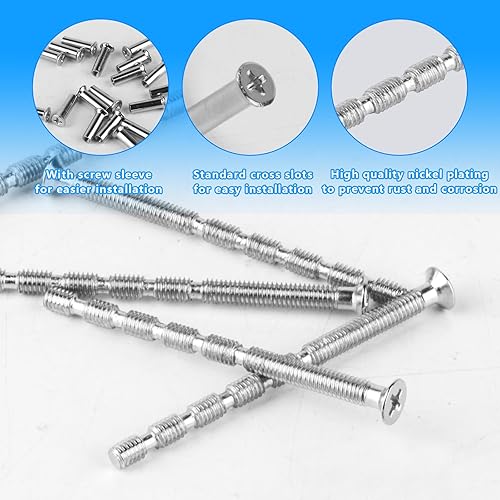 Set di 30 Viti di Collegamento con Manicotto m4x60mm, Viti per Maniglia della Porta, Viti di Fissaggio per Maniglie delle Porte Mobili Armadi(30 Viti Connettori per Mobili + 30 Manicotti)