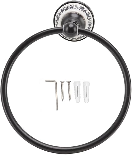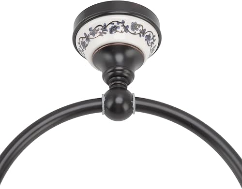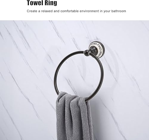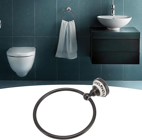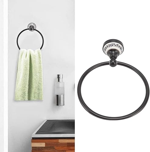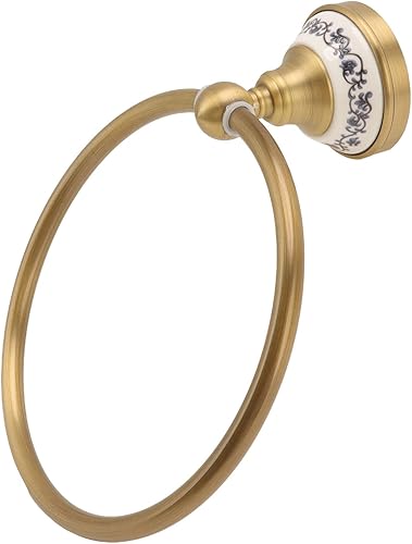 Anelli Portasciugamani da Bagno, 18,5cm Porta Asciugamani da Bagno in Ottone Antico Portasciugamani da Parete in Acciaio Inossidabile con Base in Porcellana, Portasciugamani per Bagno Cucina(Oro)