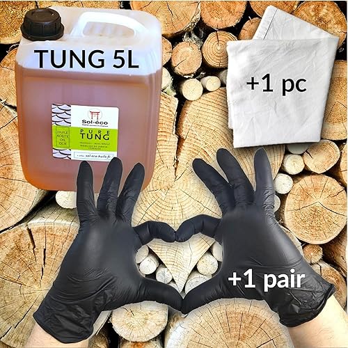 (Sol-éco) Pure Tung Oil | Protezione e manutenzione del legno per interni ed esterni | Contatto con gli alimenti | Mobili da giardino, piani di lavoro, terrazze, cucine, taglieri, teak, parquet 5L