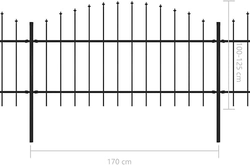 Recinzione Giardino Punta a Lancia (1-1,25) x3,4m Acciaio Nero, Cancello Giardino Esterno, Cancello per Recinzione da Esterno, Recinzione da Cantiere