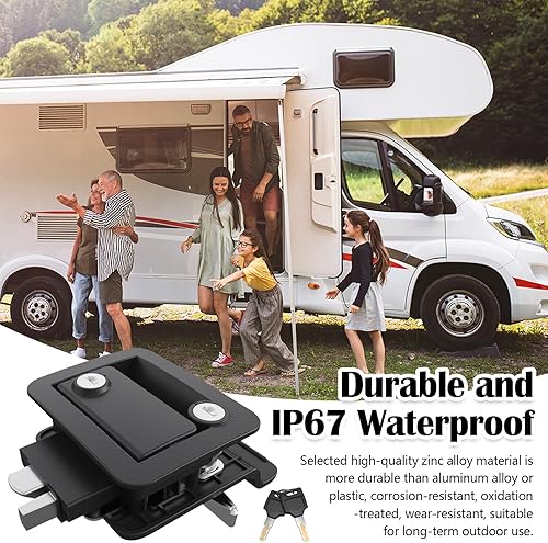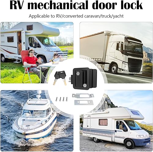 Serratura Porta, Serratura di Ingresso per Camper, Serratura per Porta D'ingresso per Roulotte per Camper per Porta con Chiusura a Paletta con Chiavi per rimorchio per auto camper, Nero