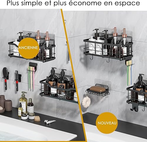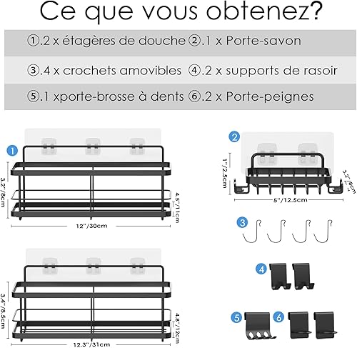 ZAVNZELF Mensola doccia senza foratura, scaffale per doccia [9 accessori da bagno rimovibili], in acciaio inox, per bagno, per doccia, Z-3-5