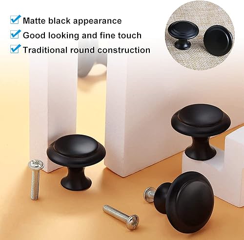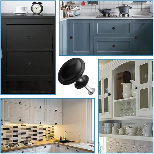 20 Pezzi Nero Opaco Pomelli per Porta, Pomelli per Mobili con Viti, Manopole per Cassetti, Maniglie per Mobili, Ø27mm Pomolo per Mobile, per Porta, Armadio, Cassetto e Credenza