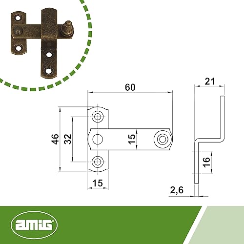 Amig - Battitacco per persiana con lembo | Chiusura di sicurezza per finestre | Colore pelle | Accessori per giardino ed esterno | Acciaio | Dimensioni: 60 x 46 mm | Stile rustico