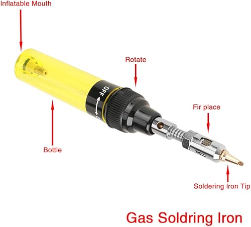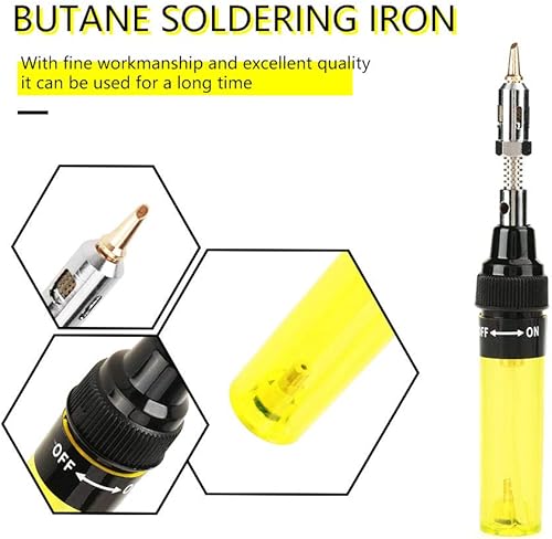 Saldatore E Torcia Butano, Saldatore a Gas Senza Fili Penna per Saldatura Regolabile da 1300 ℃ per Strumenti O Circuiti Elettronici Giallo