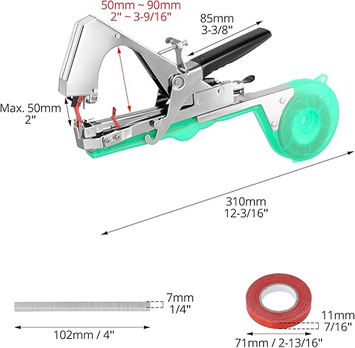 Legatrice per piante da giardino, con 13 rotoli di nastro, strumento per legare viti da giardino, con graffette, legatrice, per uva, cetrioli, pomodori