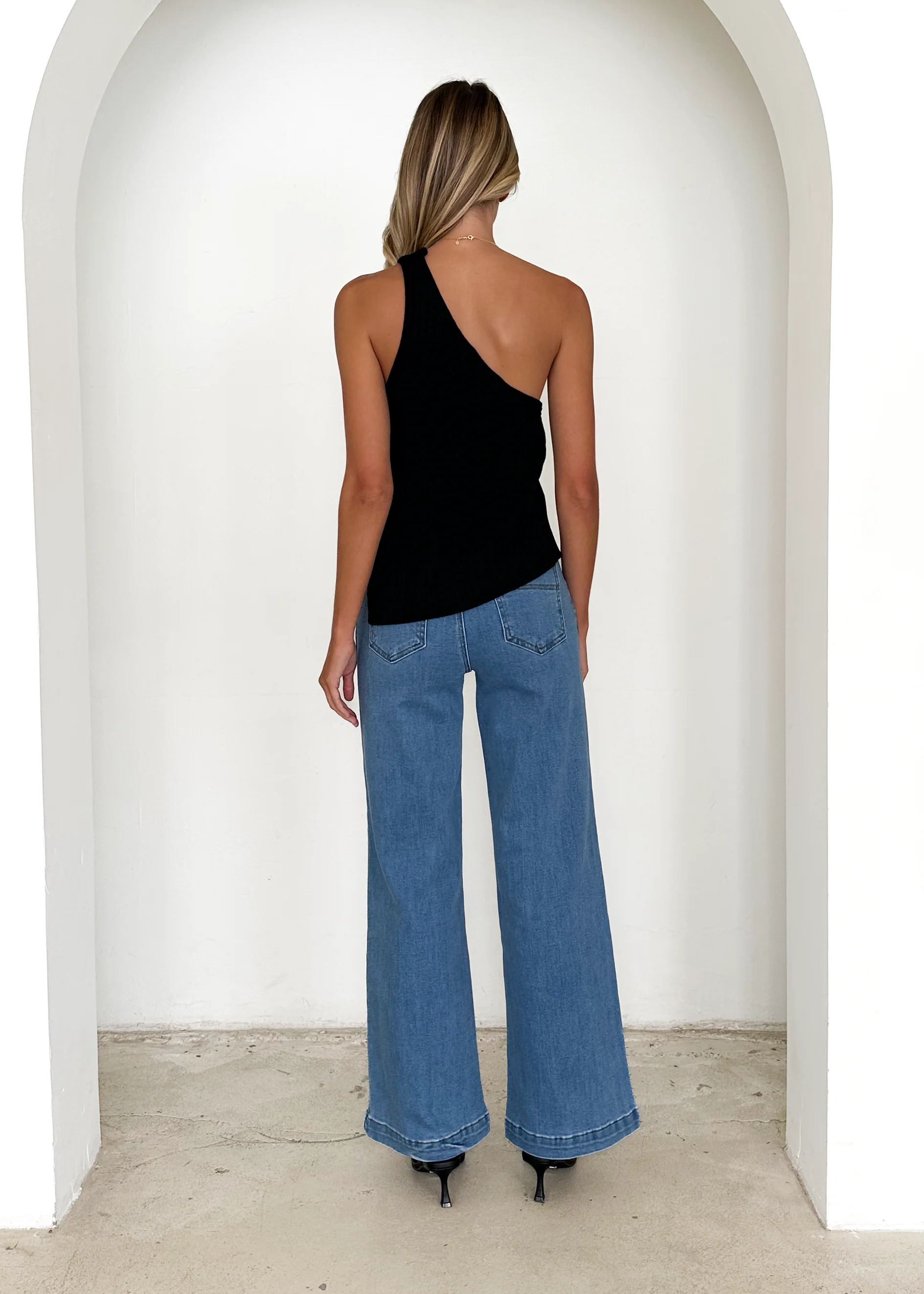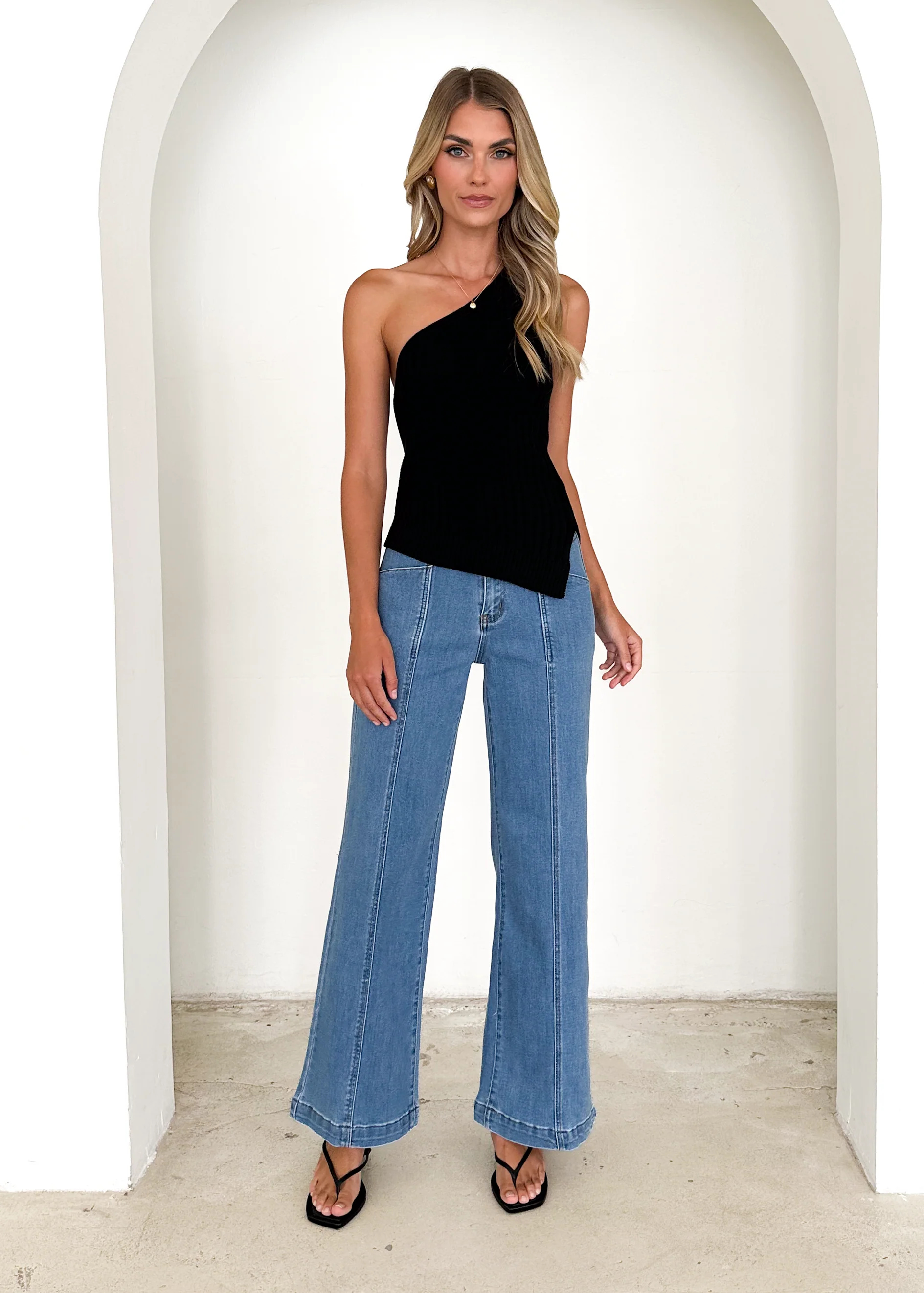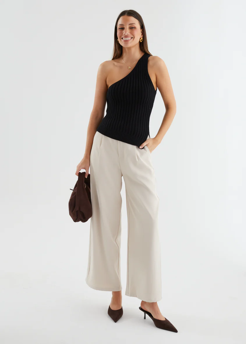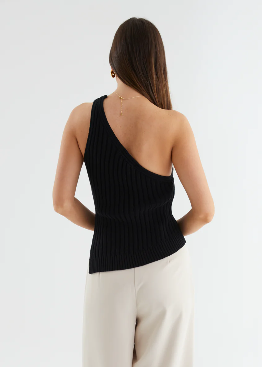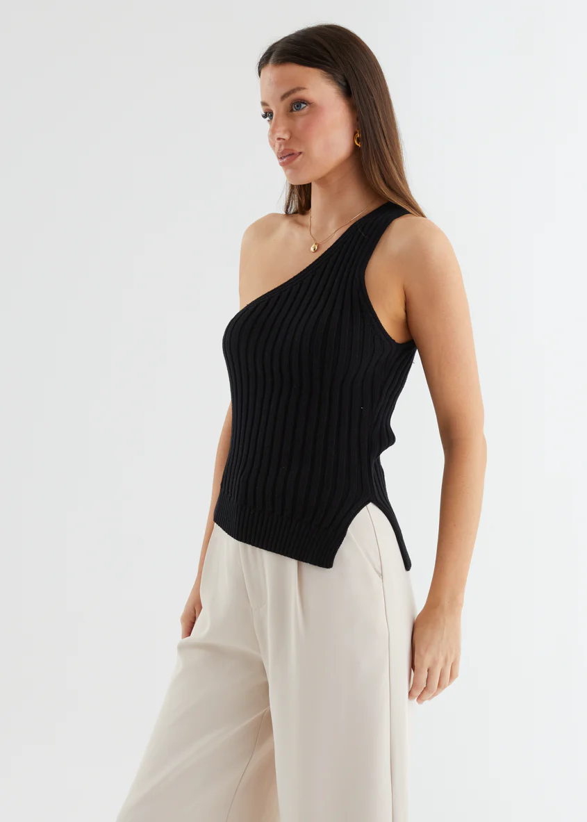 Natalee One Shoulder Knit Top - Black