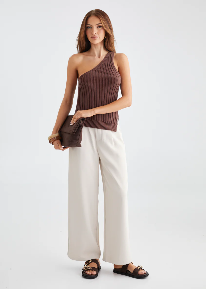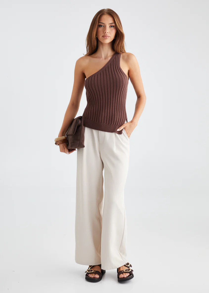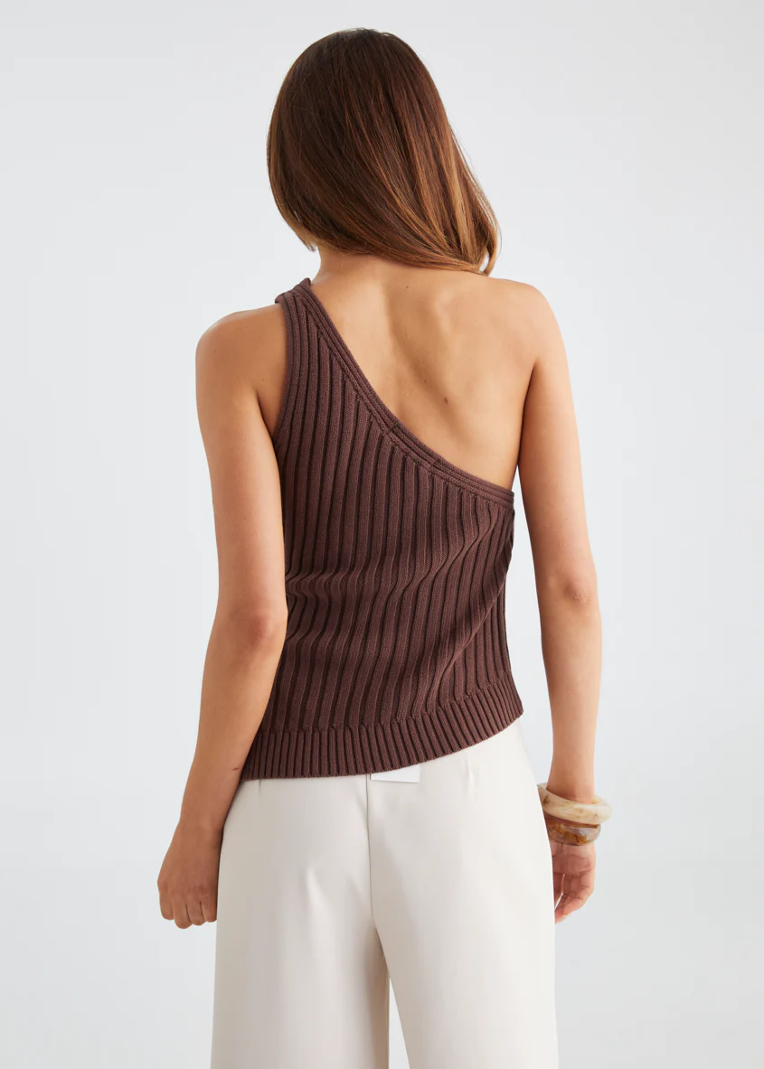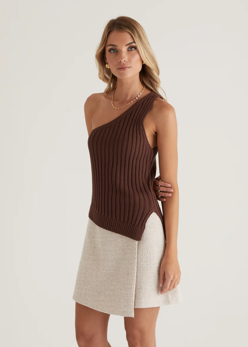 Natalee One Shoulder Knit Top - Chocolate