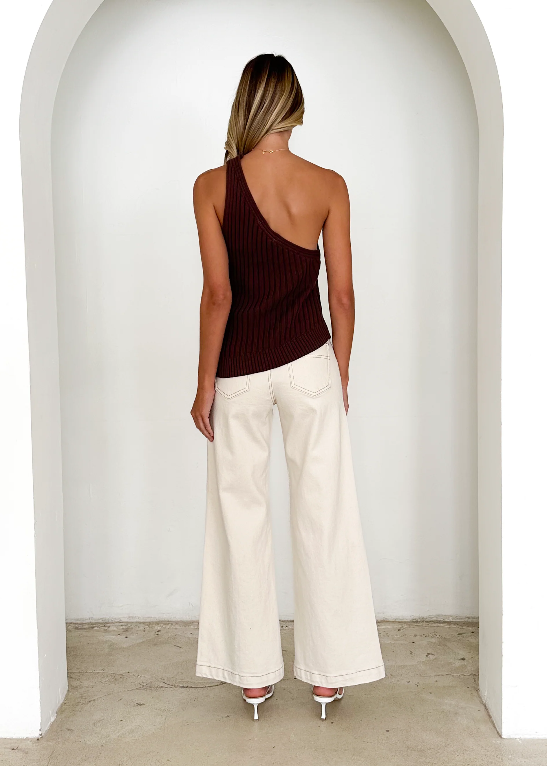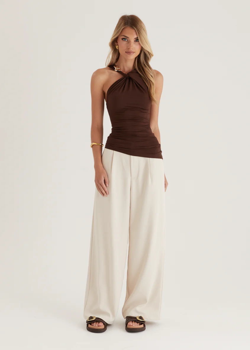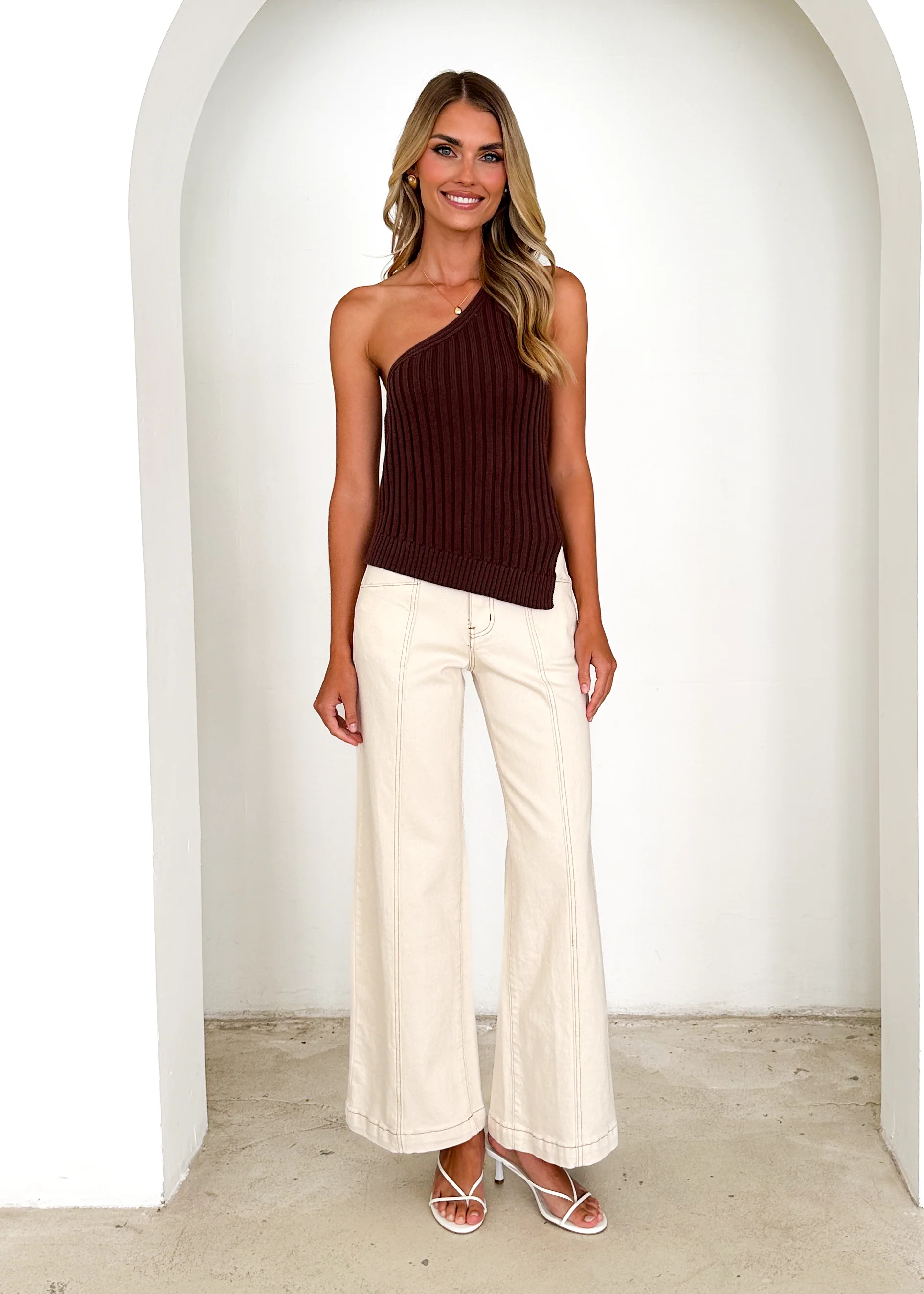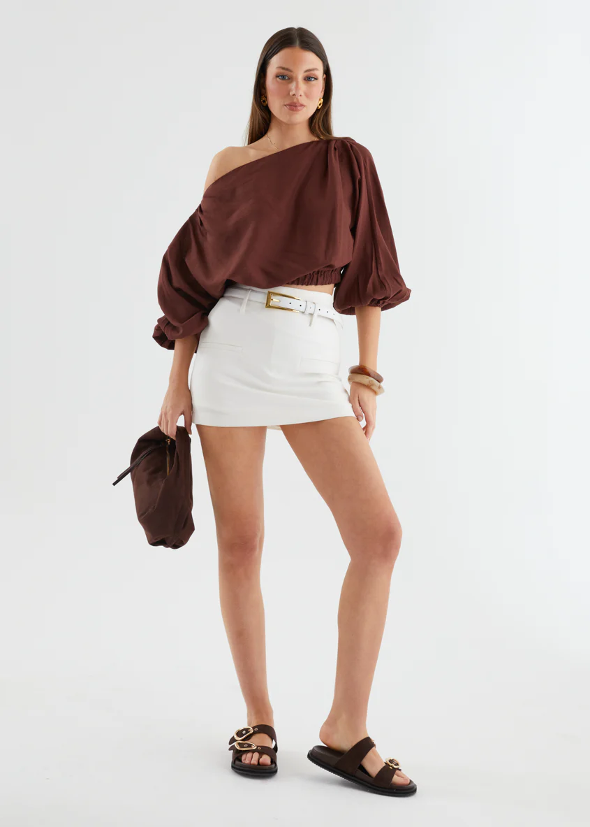 Natalee One Shoulder Knit Top - Chocolate