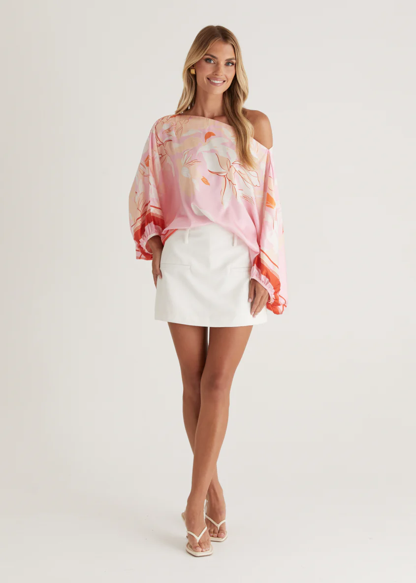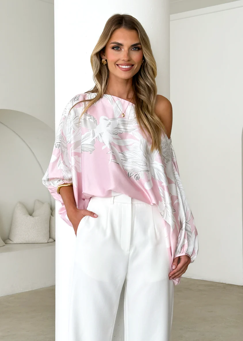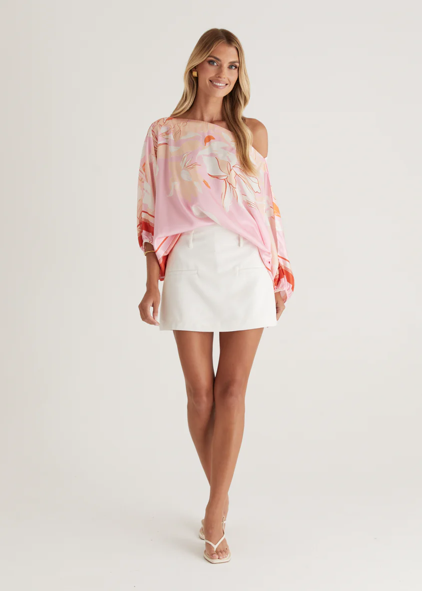 Maui Off Shoulder Top - Pink Floral