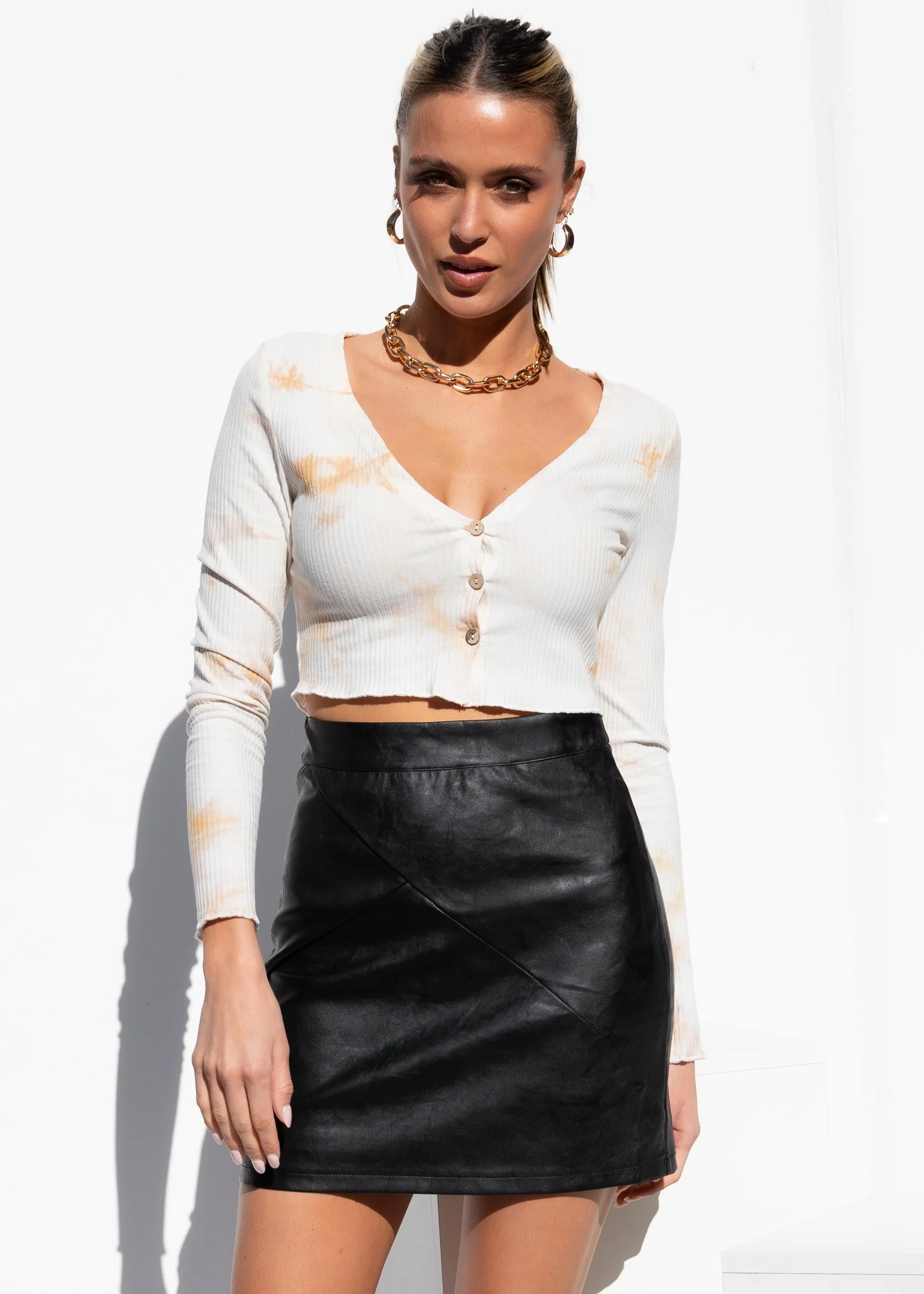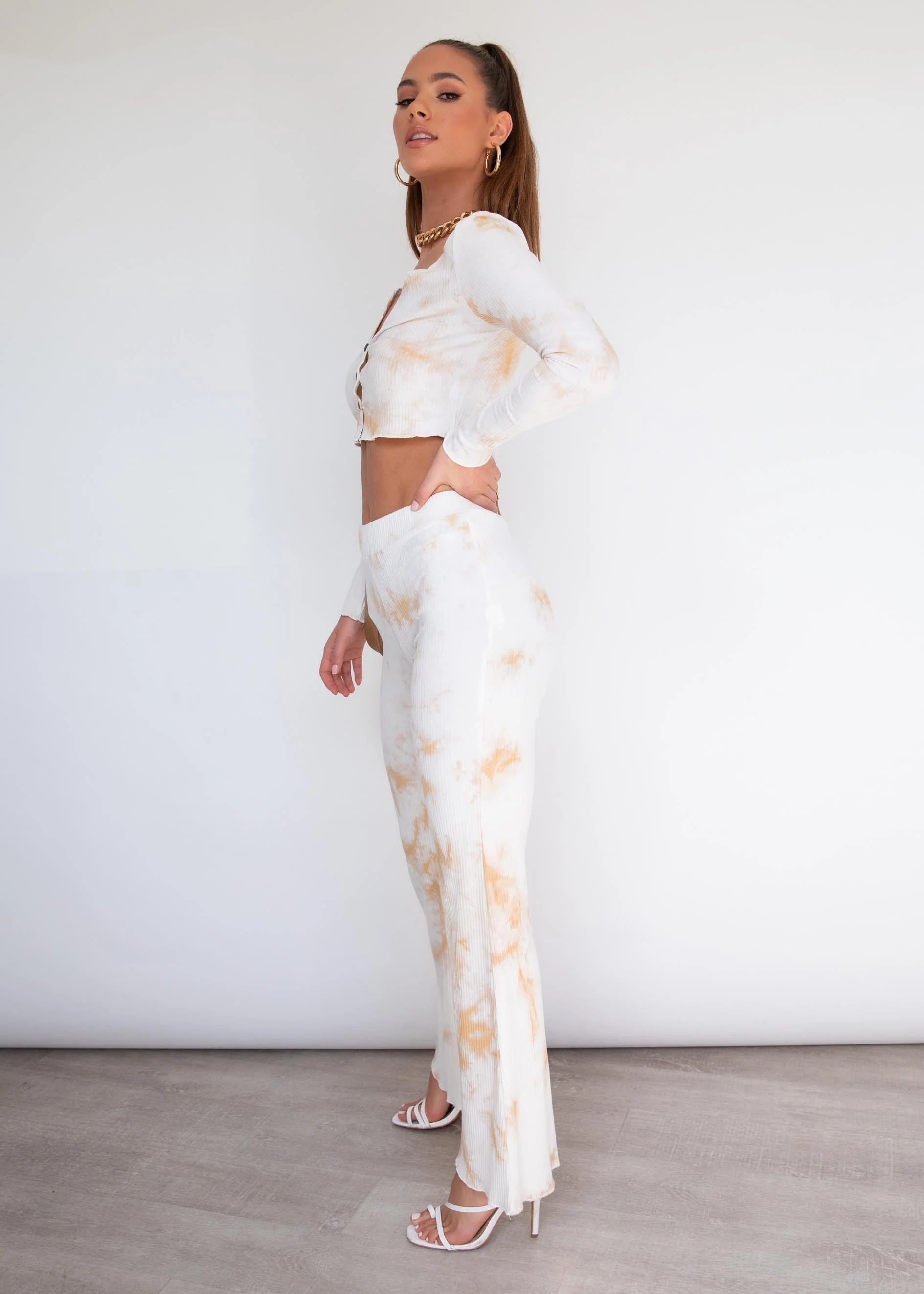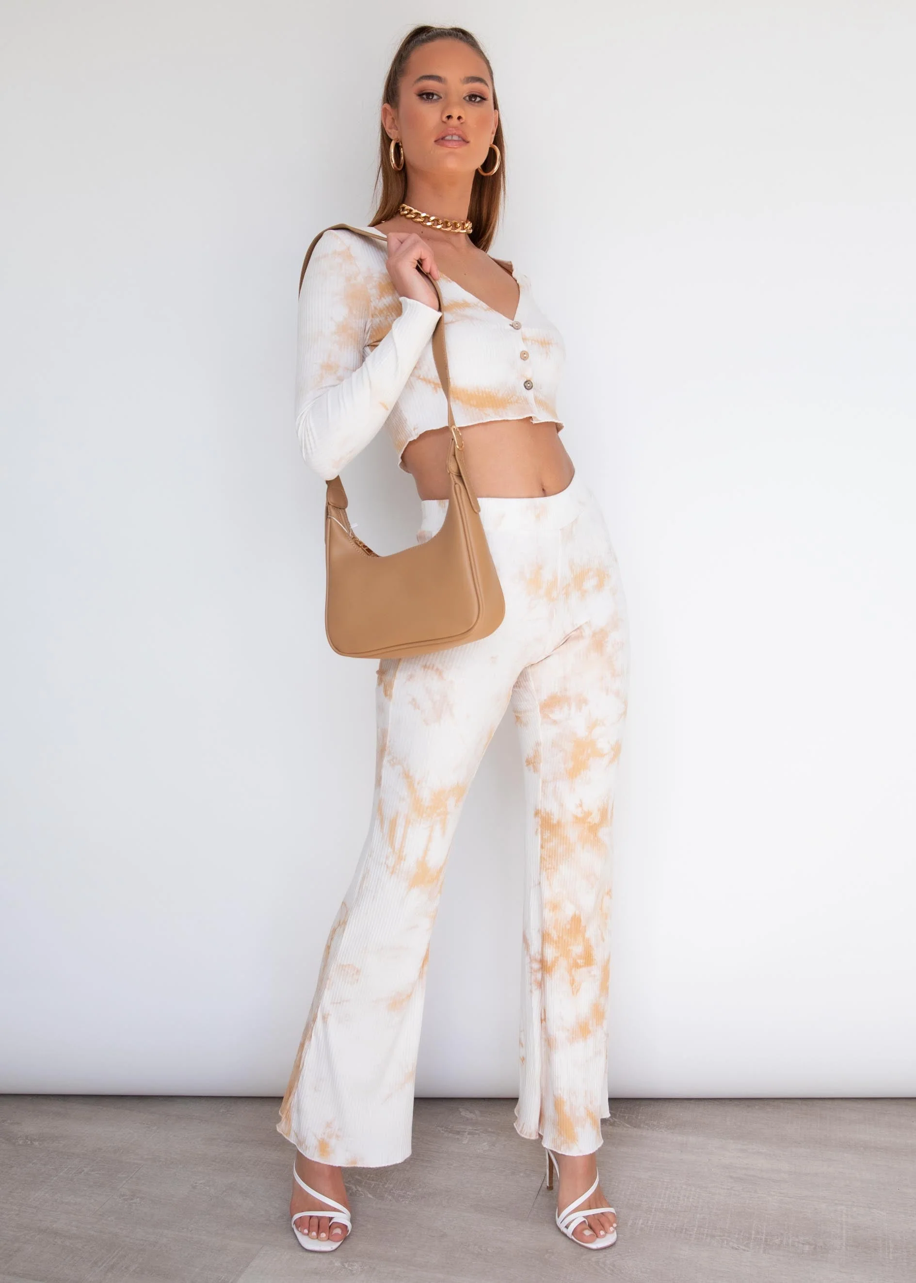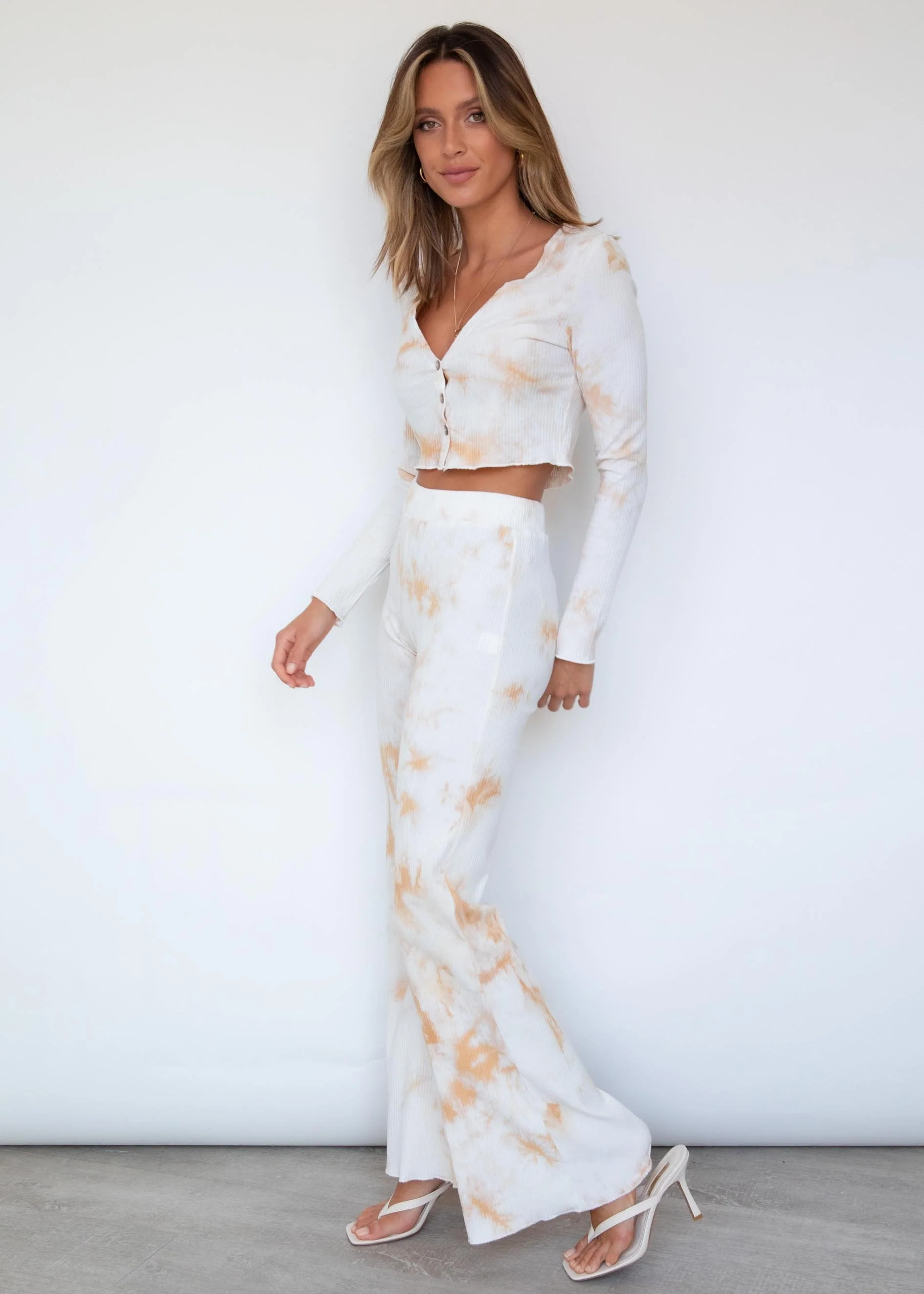 Maria Long Sleeve Top - Beige Tie Dye