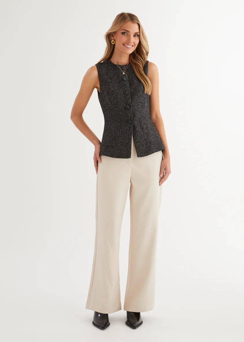 Minnie Vest Top - Black Marl