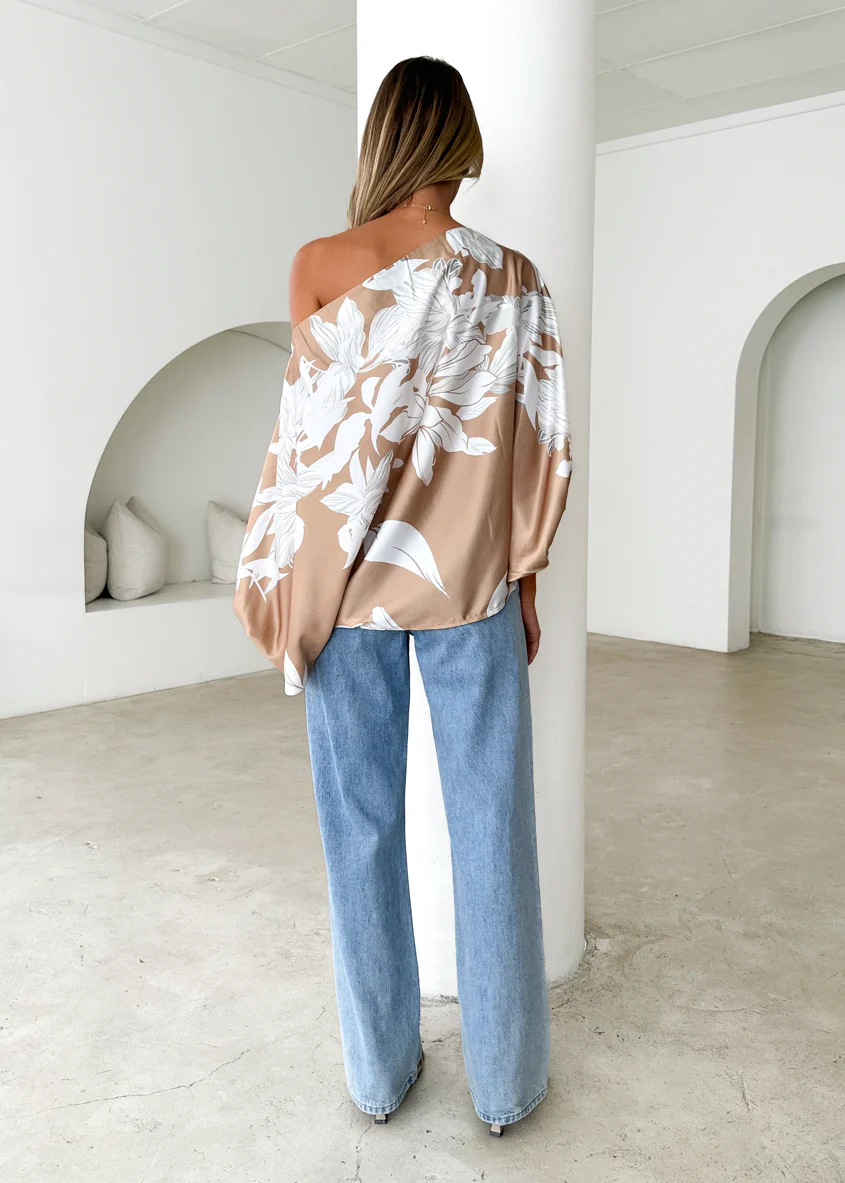 Maui Off Shoulder Top - Khaki Floral